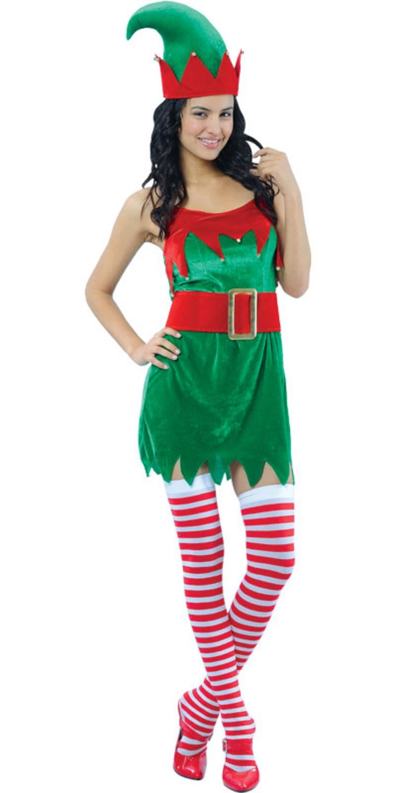 Enchanting Christmas Elf Ladies Fancy Dress Costume-Your costume includes: dress hat and belt-Be a naughty elf this year in one of these great costumes-Dress up and get into the festive spirit-See loads of other great Christmas costumes and accessories in our online store