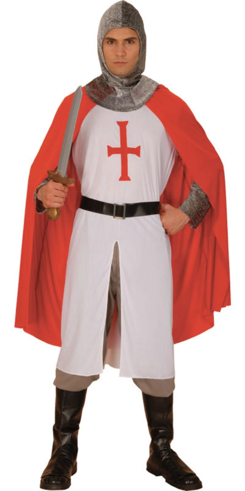 Strike fear into the hearts of your enemies with this richard the lionheart costume from wicked costumes. Richard was a king of England later known as the lion heart and famous for his exploits in the third crusade although during his 10-year reign he spent only six months in England. Even before he became King richard had earned the nickname Lionheart due to his ferocity and utter fearlessness in battle!Great for historical reenactments stage and theater productions fancy dress and role playing. Comes complete with it’s own reusable zip up suit carrier bag. Complete costume includes tunic cape trousers boot tops belt & hood Includes: White tunic with red cross decal on the front red cape grey trousers boot tops belt and chain mail effect hood.