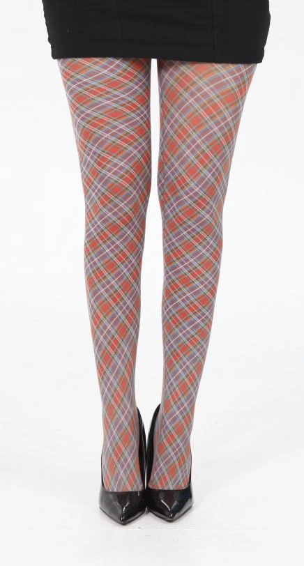 Tartan Printed Tights – Small Diagonal Red 5055419608236